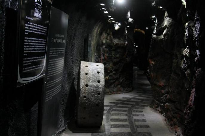 En el interior del túnel se exhiben herramientas de trabajo y medios de transporte utilizados en las minas, vestimentas de mineros y una amplia colección de minerales.